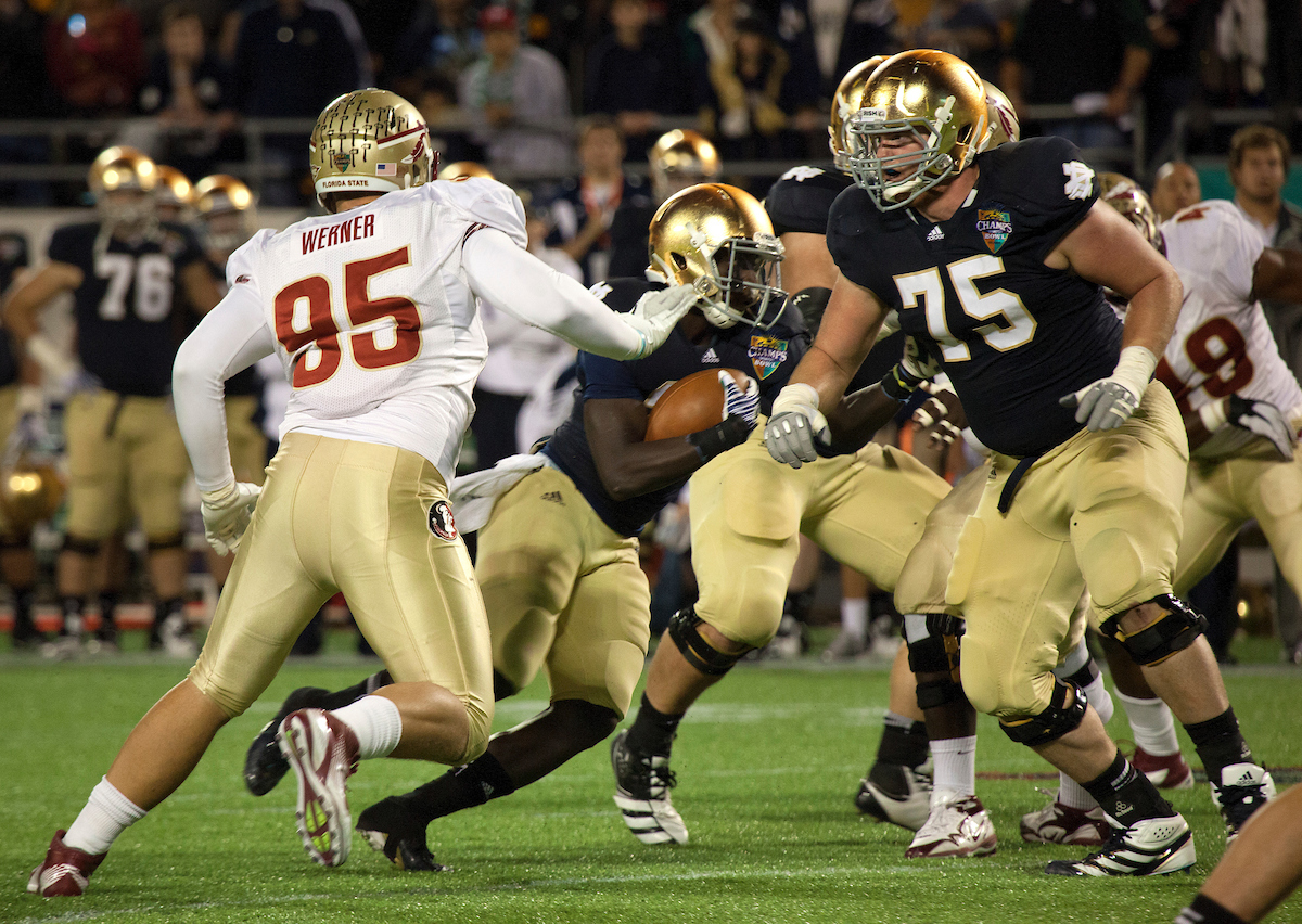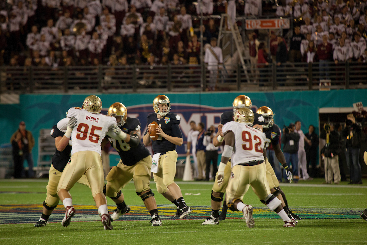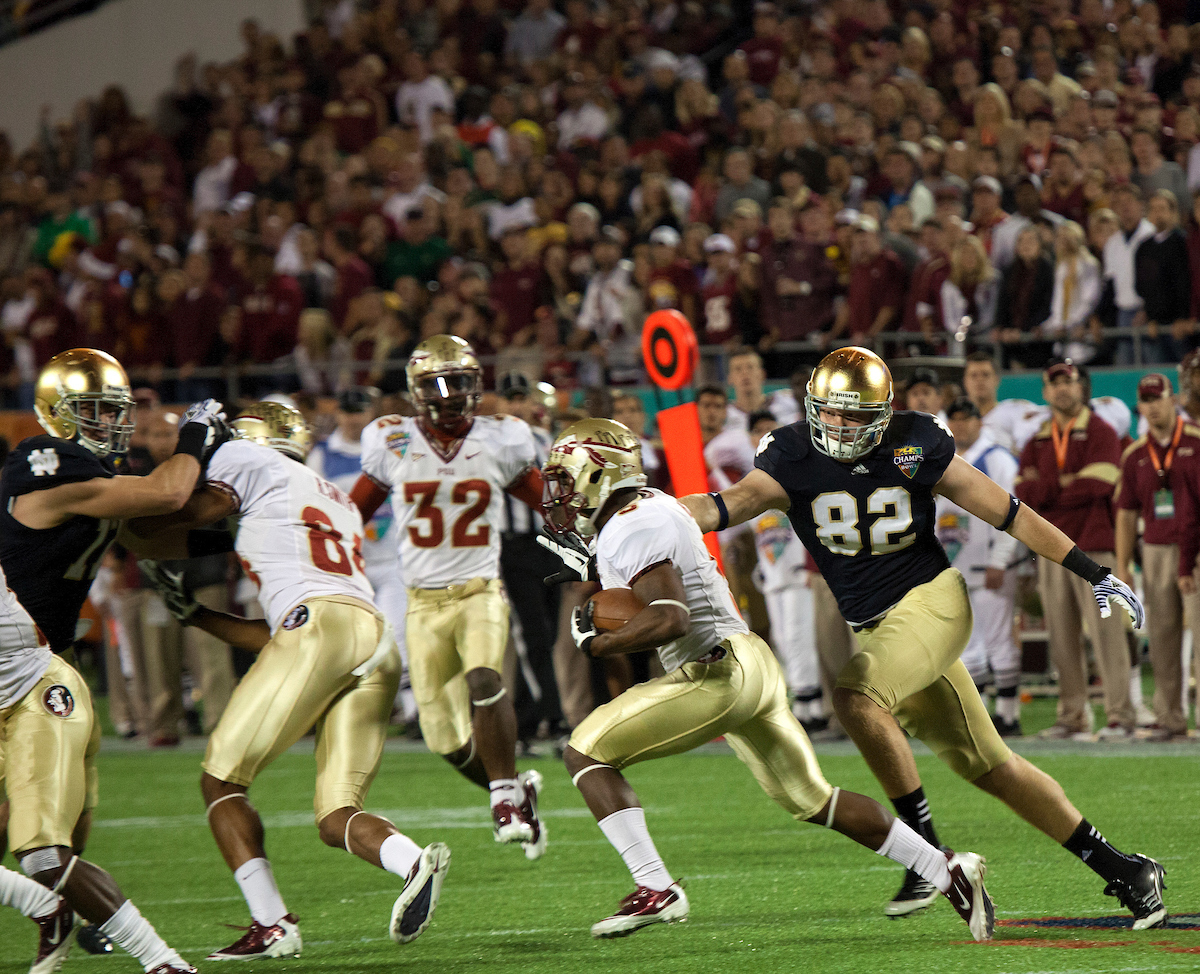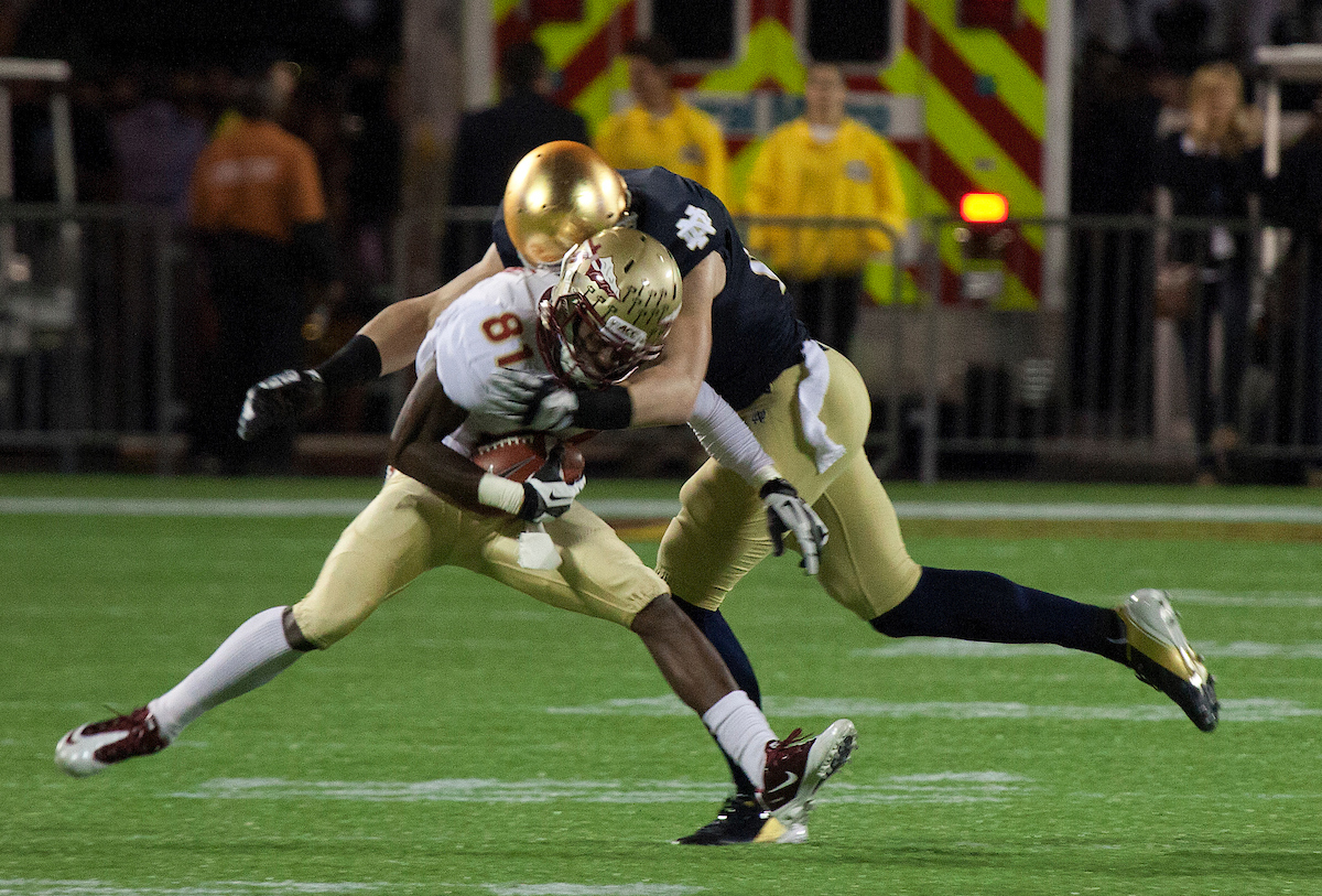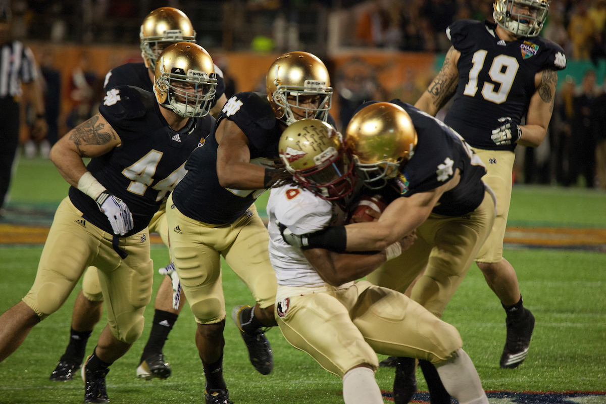 Bradham came up big again on Notre Dame’s next possession, deflecting a pass on third-and-17 to force a punt. Seminoles’ kicker Dustin Hopkins converted a 29-yard field goal on the ensuing drive to put the team up four points, and the defense held strong